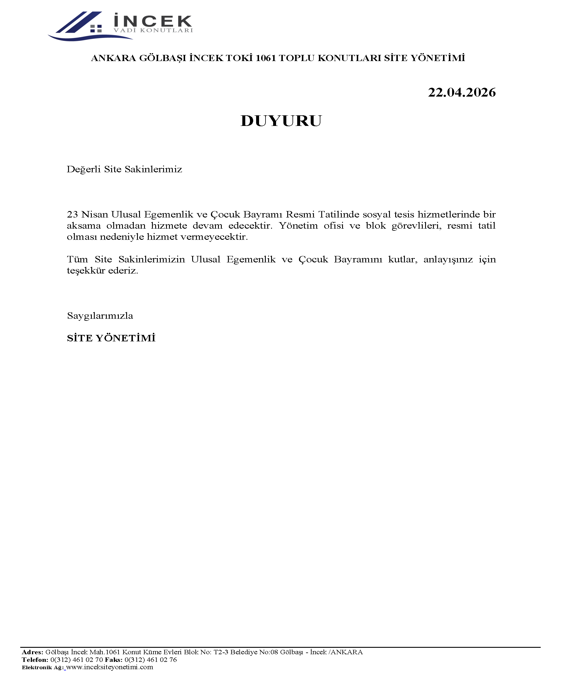 23 NİSAN BİLGİLENDİRME DUYURUSU