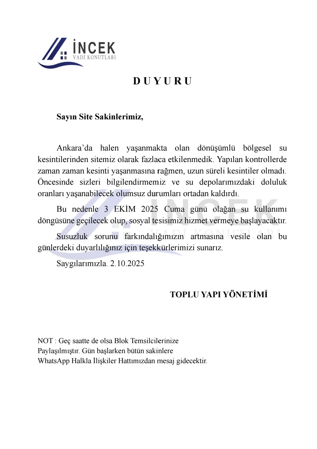 SU KESİNTİSİ VE SOSYAL TESİS TEKRAR KULLANIMA AÇILMASI