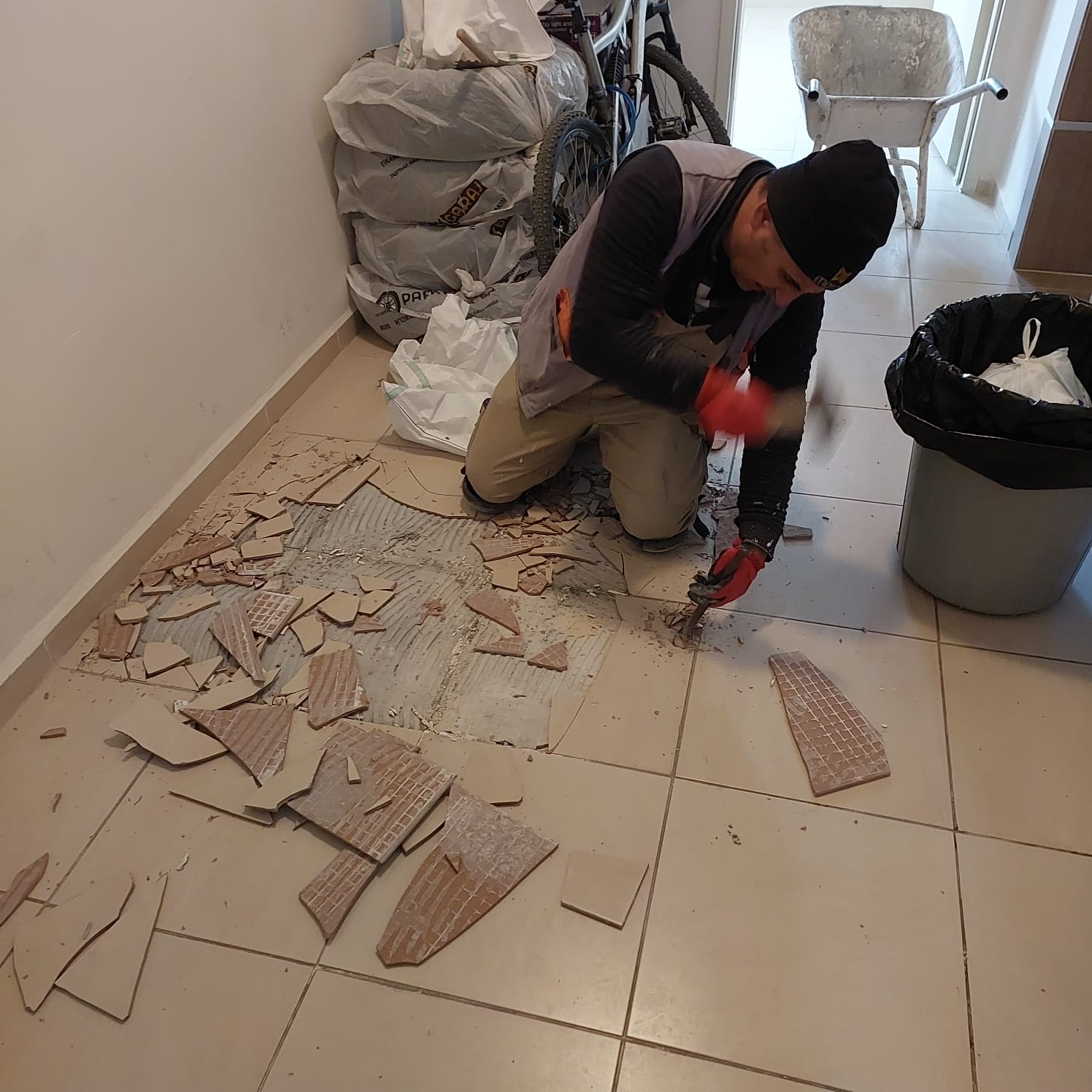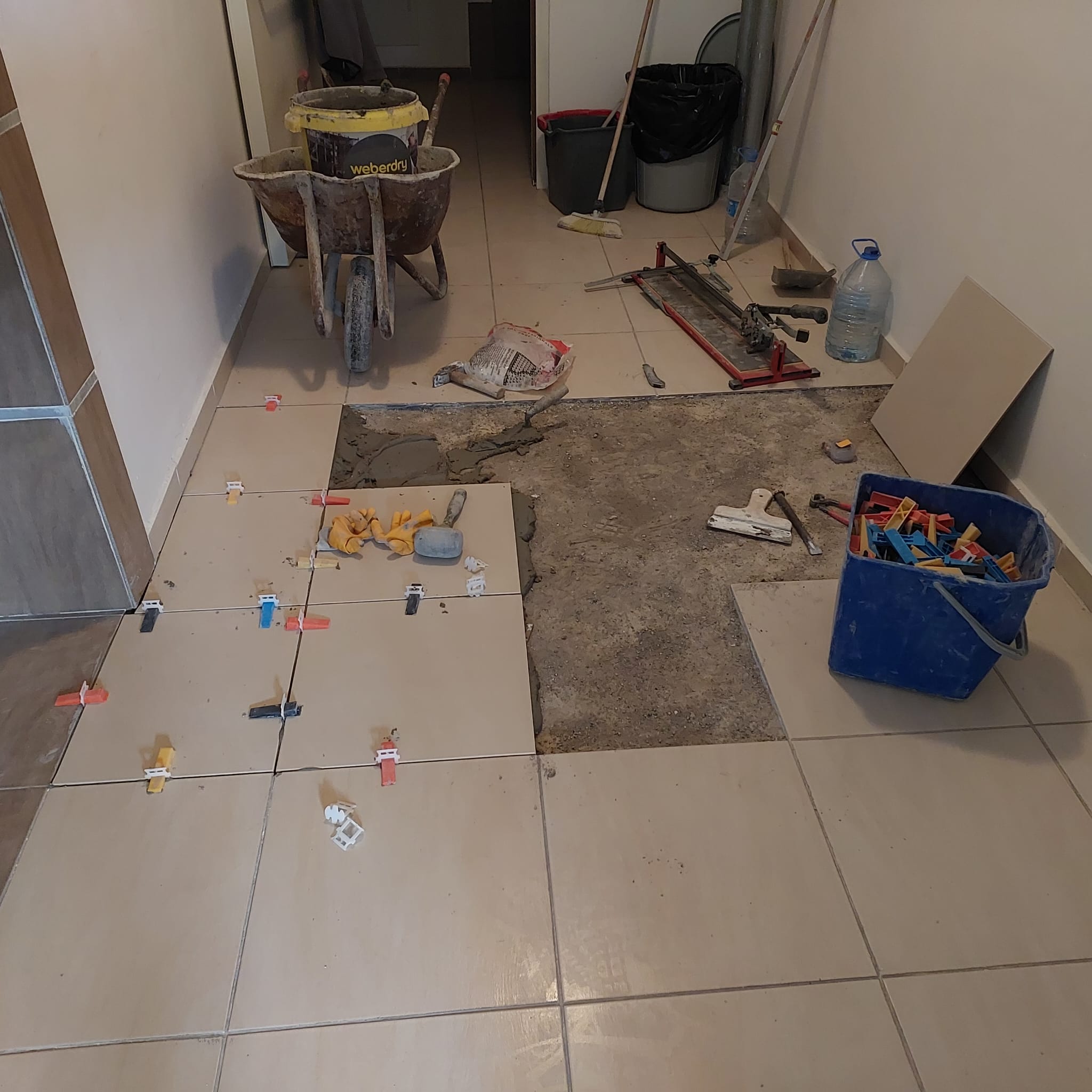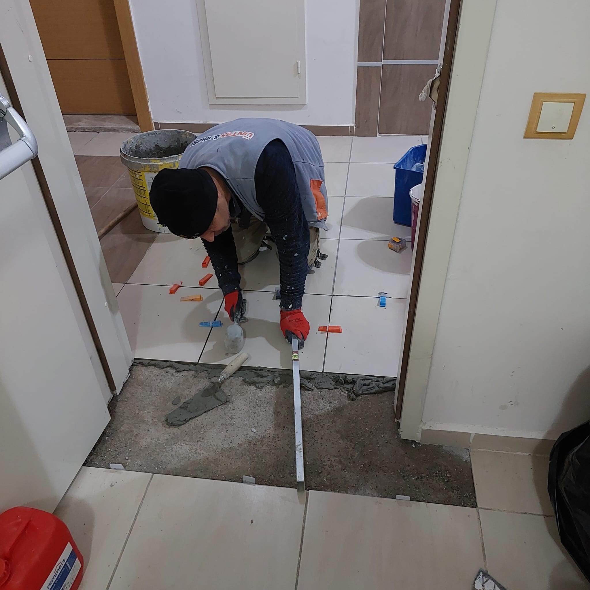 Bazı blokların koridorlarında zemin oturmalarına bağlı fayansların patlama şekilde parçalanması ve kırılması nedeniyle yağışlı dönemde blok içi çalışmalara ağırlık verildi. Sitenin Toki döneminden kalma stok seramikleri kullanılarak personelimiz tarafından gerekli onarımlar yapıldı.