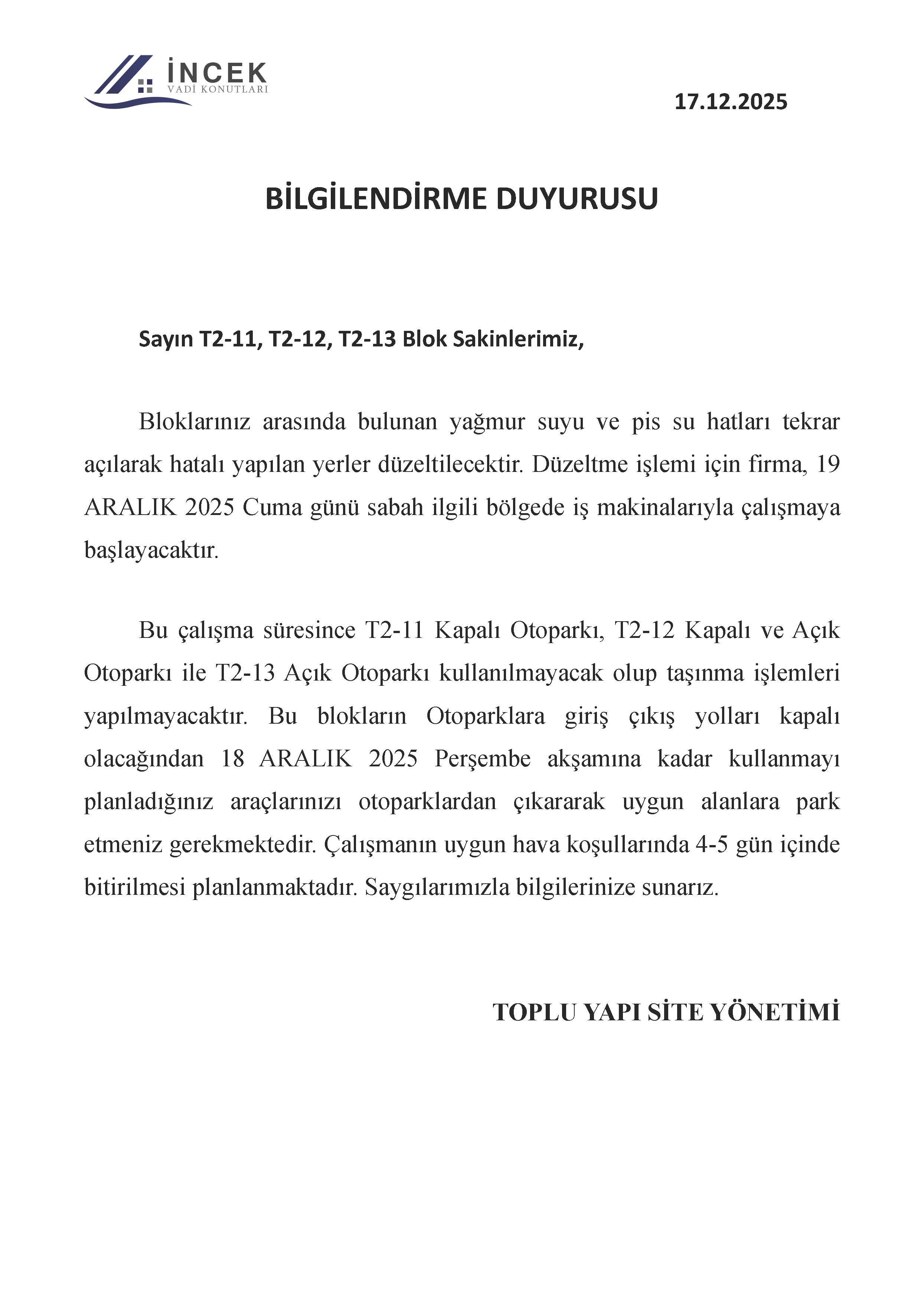 ÖNEMLİ BİLGİLENDİRME DUYURUSU